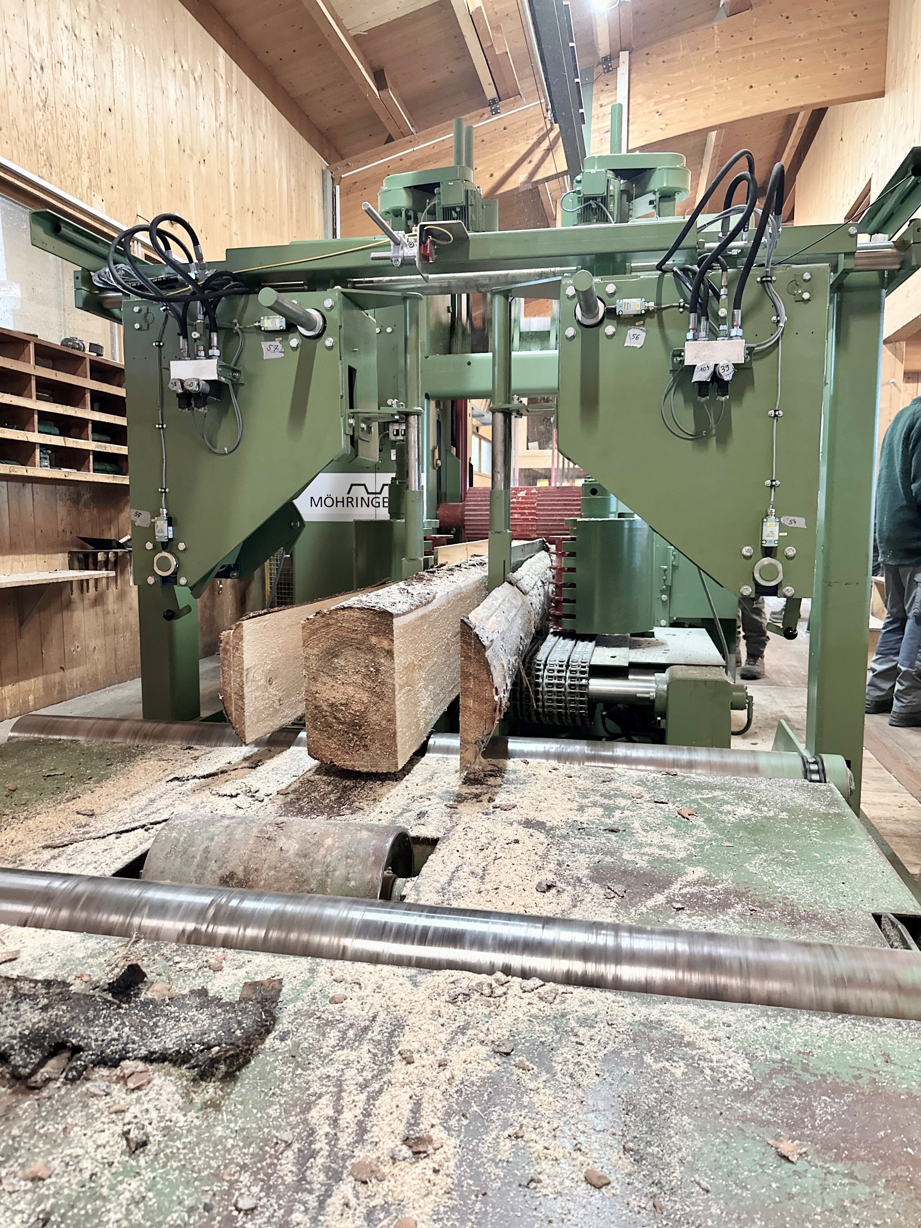 Die sogenannte Einschnittlinie ist das Herzstück eines Sägewerks, denn hier wird aus dem runden Stamm ein eckiges Schnittholz. Für die präzise Aufarbeitung der Stämme sorgt ein Hochleistungs-Vollgatter. Zu unserer modernen technischen Ausstattung zählt auch ein vollautomatischer Besäumer, mit dem Schnitthölzer in den erforderlichen Größen hergestellt werden können.