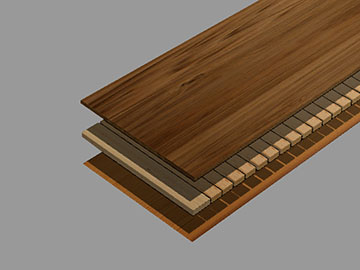 Der Kährs Furnierboden besteht aus drei Schichten; Deckschicht, Mittellage und Gegenzug. Die Mittellage besteht aus HDF. Die Gesamtdicke beträgt 7 mm. Diese Böden können nicht abgeschliffen werden. Sie sind schwimmend auf ebenen, festen Untergründen wie Beton, Spanplatten oder Holz verlegbar, können aber auch verklebt werden.